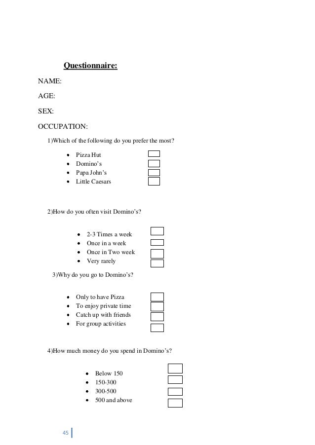 Consumer Satisfaction Questionnaire Of Dominos Marketing