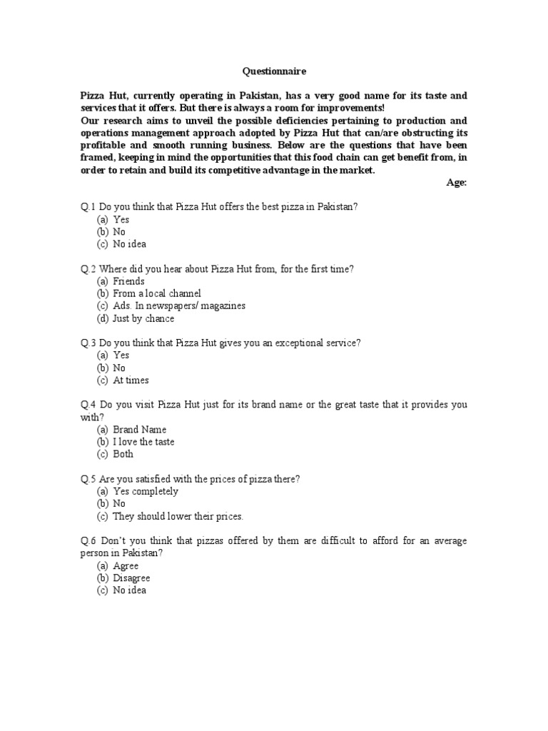 Questionnaire Pizza Hut Docshare Tips