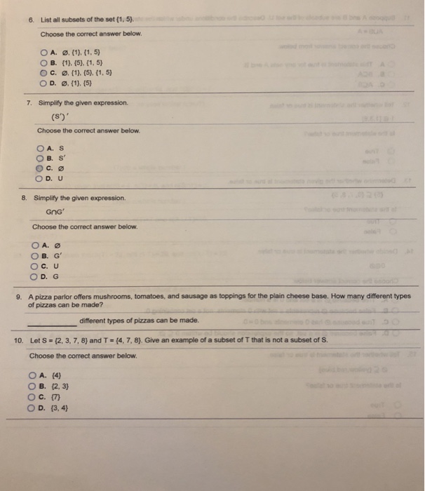 Solved 6 List All Subsets Of The Set 1 5 Choose The C