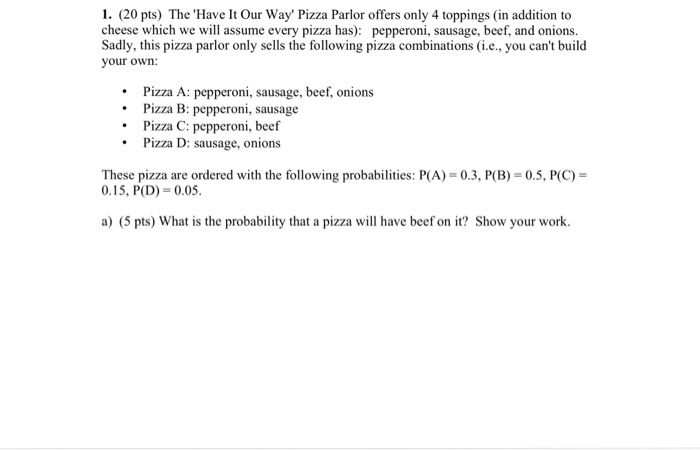 Solved 1 20 Pts The Have It Our Way Pizza Parlor Off